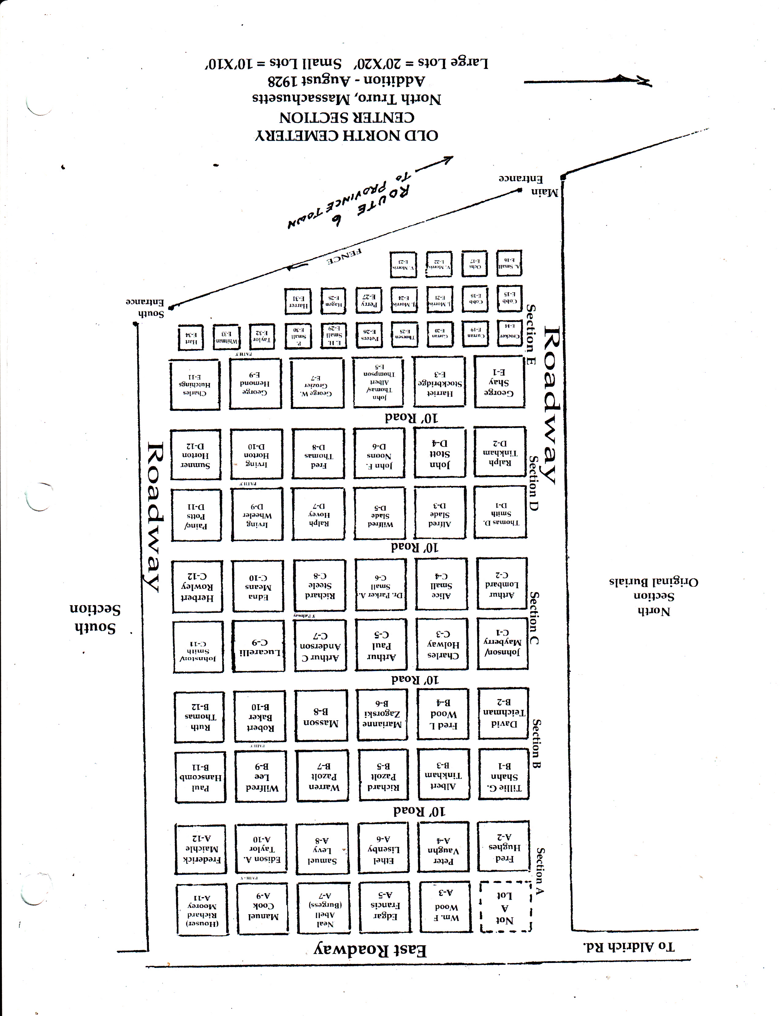 - Plan of the Sacred Heart Cemetery, Sections A Through C (PDF)