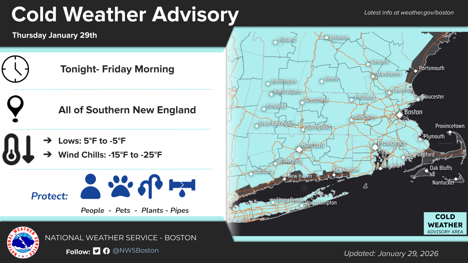 Cold Weather Advisory Overnight 1/30; Winter Weather 2/1